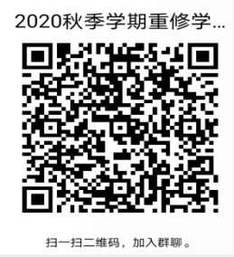1.扫码加入QQ群:“2020秋体育课重修学生群”,申请入群必须备注"2020秋重修学生",否则不予批准入群。入群后注明学院+班级+姓名。